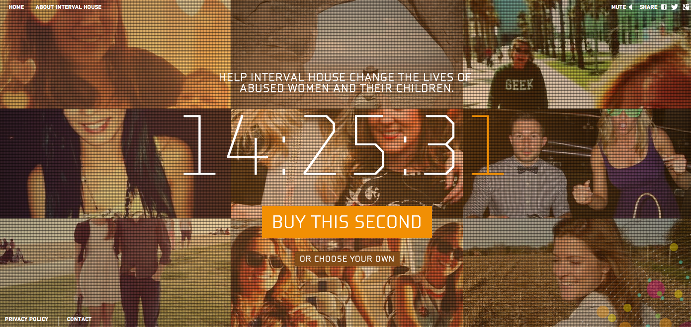 Today I came across a great online charity drive for Interval House Canada called Every Second Matters. The site pulls images of your female Facebook friends to illustrate that every second a Canadian woman is abused. It was ‘newswothy’, shareable, conveyed a powerful emotive message but I didn’t donate. Not because I didn’t want to, but because I couldn’t be bothered. After the Every Second Counts hook, the donate function was tacked on to the end. Enter your name, email, credit card details, address, – it’s painful even thinking about it. Here’s the thing, people do care, but just not that much.