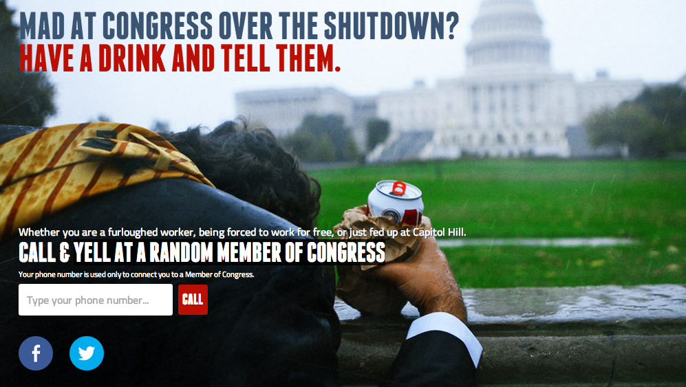 This week, like many, I read about drunkdialcongress.com – a site that prompts you to “call and yell at a random member of congress” to voice your frustrations about the government shutdown.