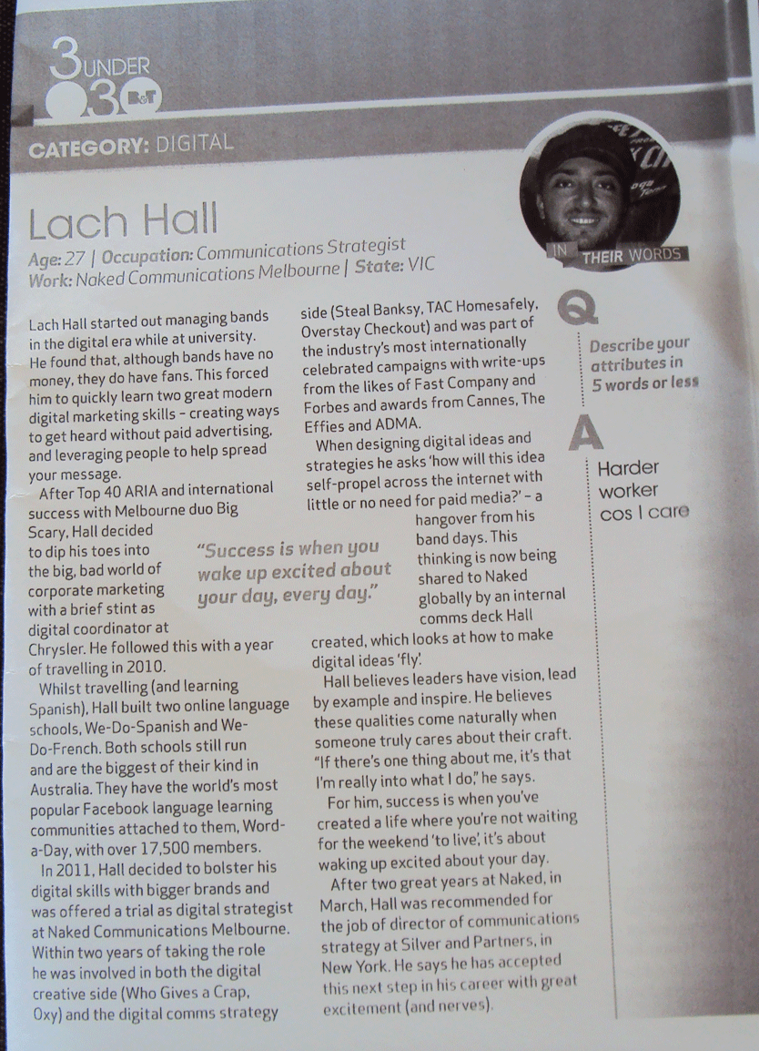 In 2013 I was humbled to be recognised as a 30 Under 30 marketer.